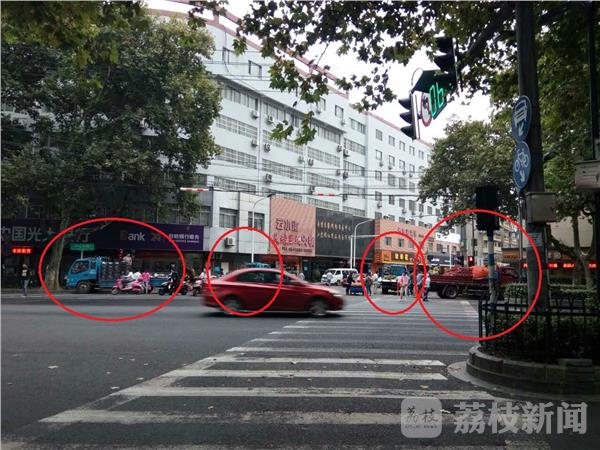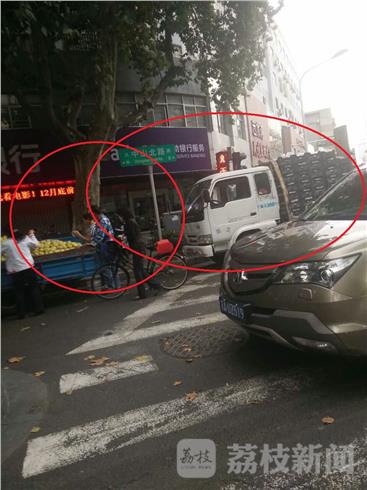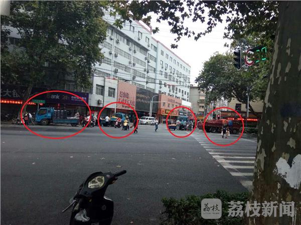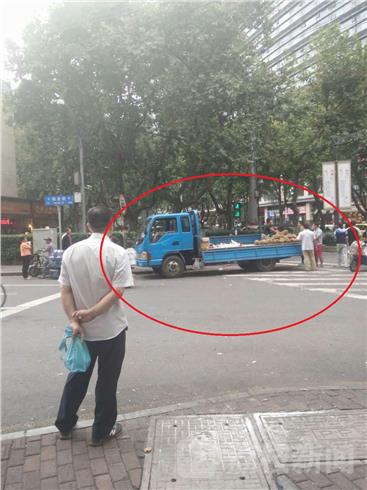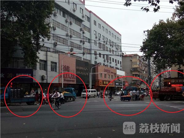 10月4日下午14点左右,南京中山北路与和会街的路口,停了四辆货车,有卖水果的,有卖山芋的,据了解,这几辆车前几天就天天在这里了,市民刘女士说,这些车子是长期在这里占道经营的,好久了,人没有换过,以前还是在晚上过来经营。这几天,白天也过来了,虽然有城管车辆过来,可是这些人看到城管车过来,马上就开走,城管走了,他们马上回来,和城管队员打游击。