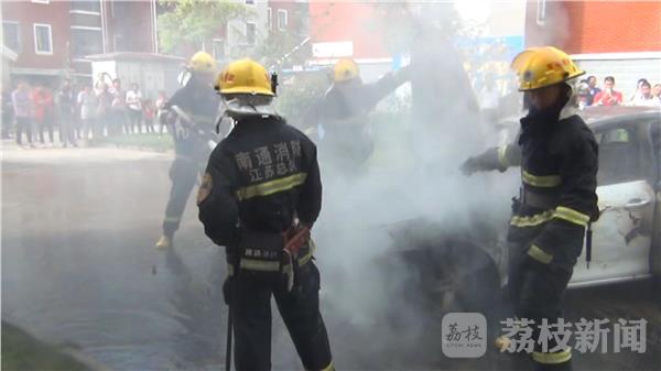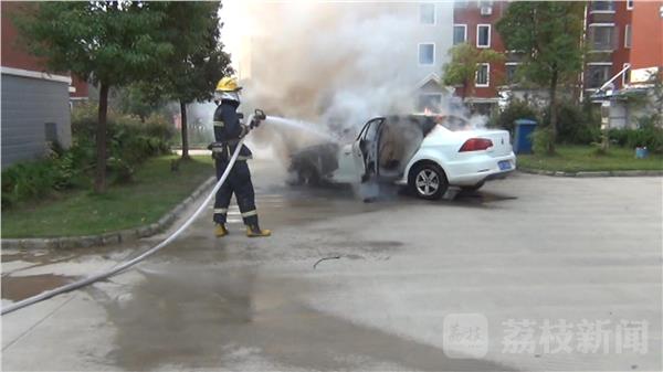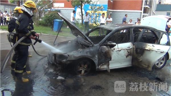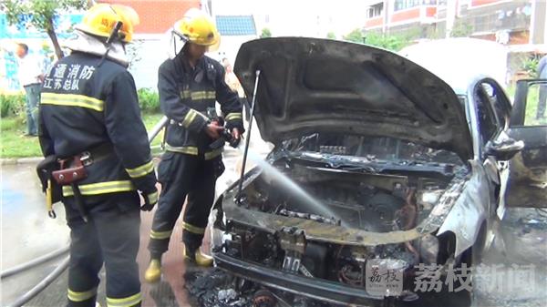 昨天(10月5日)早上8时23分,位于江苏省南通市金沙镇一小区内的一辆小汽车就突然着火。消防部门接到报警后迅速调派消防官兵赶赴现场进行处置。记者到达现场时,在距离事故现场还有二三十米的地方,就能看到冒起的浓烟和火焰。消防官兵到达现场后,消防指挥员命令出设一支水枪对火势进行打击,并查看油箱温度,经过大约10分钟的扑救火势被扑灭。据车主描述当时正在倒车,突然间就起火了,目前具体原因正在调查中。消防部门提醒:汽车自燃一般有初期前兆,比如车身有异响、异味,这时应当机立断熄火停车,最好能将车停在避风处。查找起火点,注意不要随意打开车前盖。因为空气进入车内反而容易助燃,再利用灭火器进行自救。