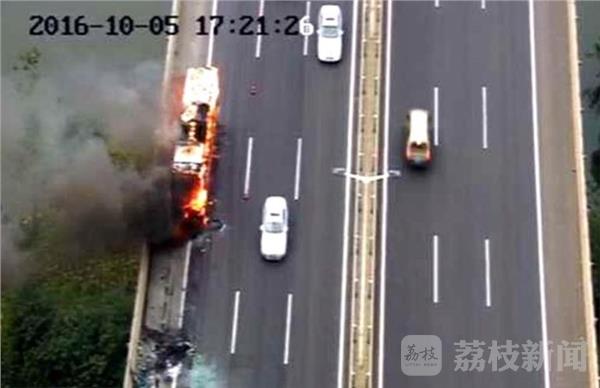 荔枝新闻记者今天(10月6日)从扬州警方获悉,5日傍晚17点多,一辆客车在润扬大桥镇江辖区内突发大火,凶猛的火势很快将车身烧成了空架子。