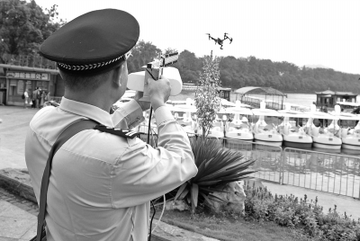 玄武警方介绍,10月7日,南京警方举行了“南马”安保实战演练时,他们在玄武湖畔专门针对这款新型“狙击枪”进行了测试,结果非常成功。当无人机升空后,民警双手拿起“狙击枪”对其进行“射击”。很快,地面上操纵无人机的飞手便慌了神,因为无人机不听使唤了。接着,无人机便被迫降落在了岸边。