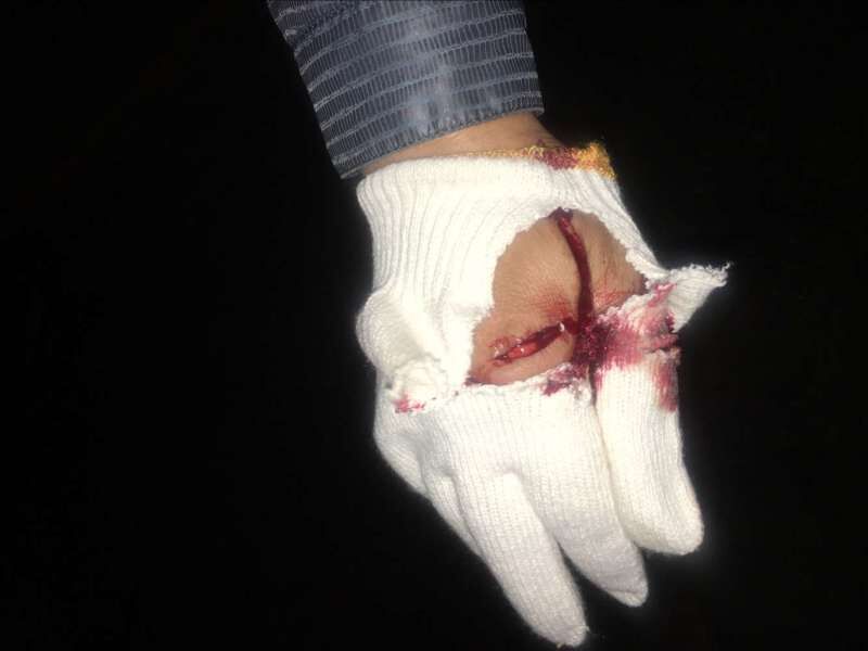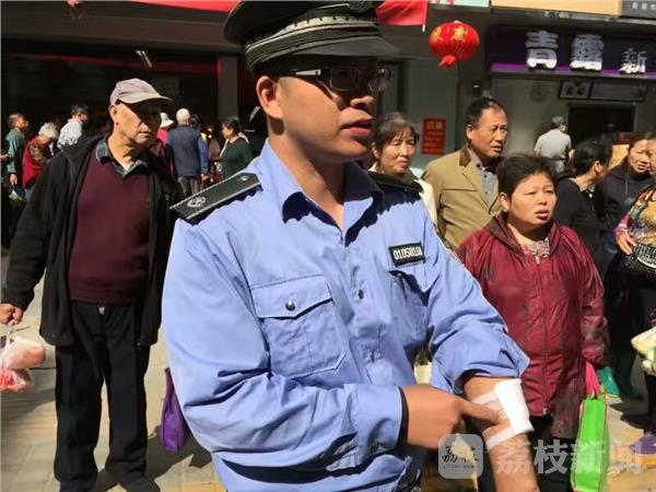 当日21时50分,小市城管中队巡查至小市街路口时发现有数个摊点,见到执法车辆过来后,几个摊点车主迅速离去,等到执法人员下车时,只剩下南京元康街坊中心的东侧路边停了一辆卖鸭脖、猪蹄膀的手推车仍未离去,执法人员上前询问情况,此时杨姓摊主从路边冲着执法人员大声喧闹,声音浑噩并不清晰,只能听出“你们眼睛都瞎了”等几句骂人的脏话。当执法人员准备暂扣手推车时,摊主突然从车里砧板上,抽出用来切鸭脖、猪蹄膀的菜刀,在毫无征兆的情况下突然地砍向执法队员,小市中队中队长沈正剑左手小臂被刀口划伤,协管员王贵民右手虎口砍出两道深可见骨的伤口,鲜血从伤口处直涌出来。执法人员立即保护伤者退后,与杨姓摊主保持距离,以防摊主再次做出不理智的行为。同时一面电话报警,一面将两名伤者送至医院进行救治。