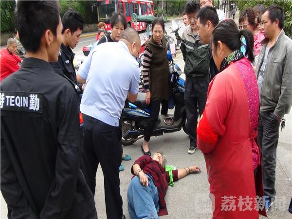 据老太太冯玉兰介绍,她今天中午在幕府南路一家理疗室进行理疗,2点左右理疗结束后,由于赶公交车跑的比较快,不慎跌倒在地无法动弹,她希望旁边市民可以帮忙叫她在环卫所上班的女儿王春明赶过来。
