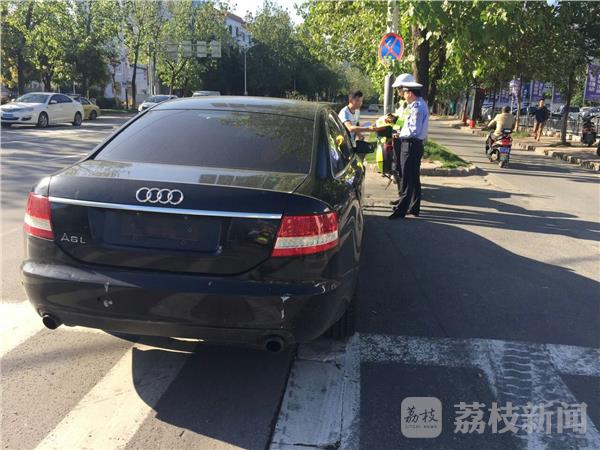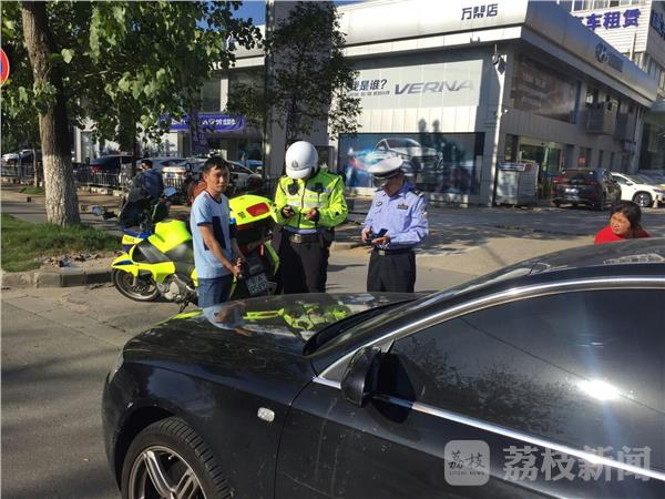近日,在交通早高峰期间,南京交管局机动大队民警沿应天大街高架由西向东巡逻时,突然发现一辆行迹可疑的车辆,该车后方未悬挂号牌,并在同方向行驶时故意躲避巡逻民警,巡逻民警迅速通过电台告知前方岗点民警将车辆拦下检查。