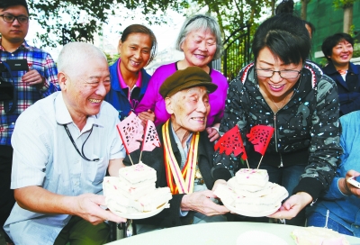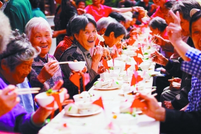 昨天,我市各区、街道、志愿者与老人一起庆祝重阳节,为他们送上重阳宴,一位个体餐馆老板还在社区广场上架起锅灶,为老人送上热气腾腾的长寿面。