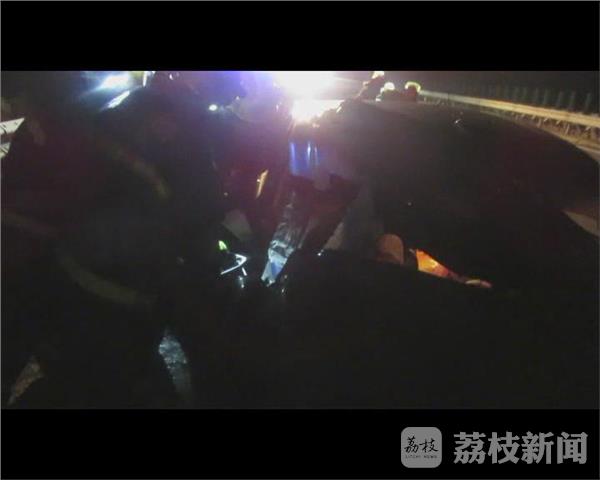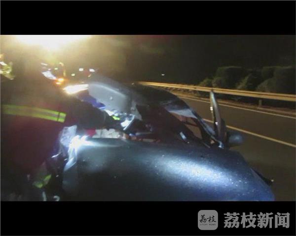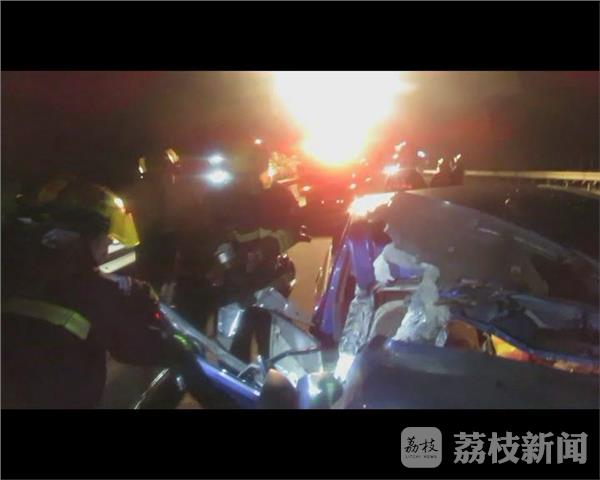10月11日凌晨1时44分,苏州市消防支队常熟大队接到110指挥中心报警称,在常熟梅李镇沿江高速往上海方发生一起交通事故,有2人被困,情况十分紧急。接到报警后,大队迅速调派梅李中队3辆消防车17名消防官兵赶赴现场处置。