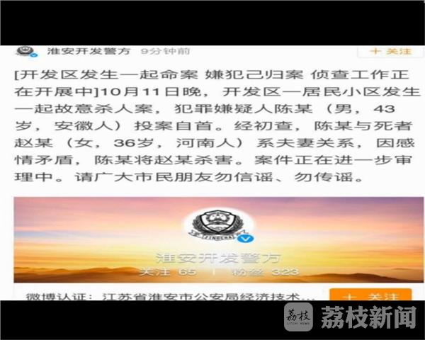 10月11日,淮安开发区南方花园小区发生一起故意杀人案,案件发生后,各种谣言在网络间迅速传播。对此,10月12日淮安开发警方发布微博,对此案进行公布。