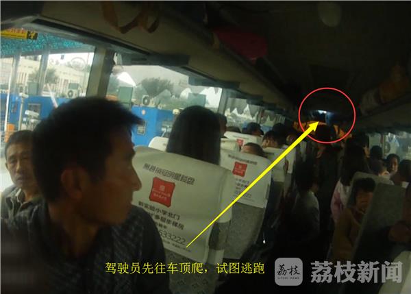 客车停下之后,民警立即上车进行检查。当民警走上客车时,发现一名男子将客车的天窗打开,正准备登上客车顶部。