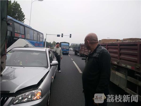 10月13日,南京市民陈先生向记者爆料,今天上午十点多,在103国道南京高新园区段发生了一起四连撞的交通事故。