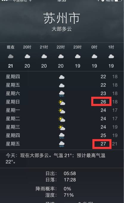 这是中国气象网上的天气预报,我们再看看苹果手机上的天气预报