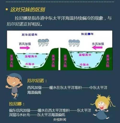 拉尼娜是西班牙语“La Ni?a”——“小女孩,圣女”的意思,但在气象中,她是指赤道太平洋东部和中部海面温度持续异常偏冷的现象,是热带海洋和大气共同作用的产物。