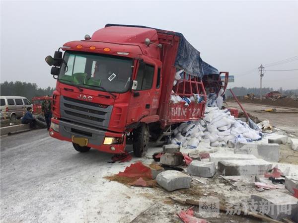今天(10月19日)早上六点多钟,淮安市淮涟公路涟水县一中西侧,一辆满载货物的大货车在行驶途中突然侧翻,所幸的是无人员受伤。