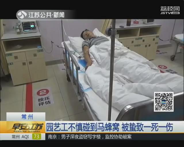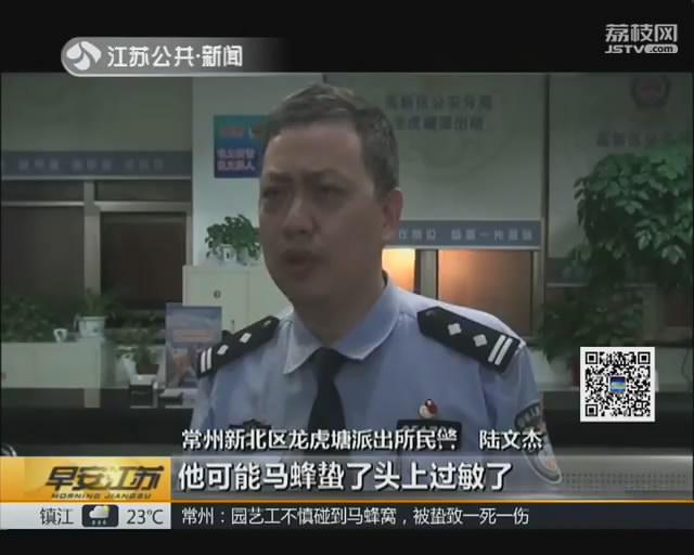 昨天下午3点半,常州市新北区腾龙南苑小区内有2名园艺工人在修剪花木时,不慎碰到了一个马蜂窝,结果导致被蛰,其中一人因抢救无效而死亡。