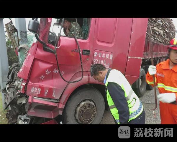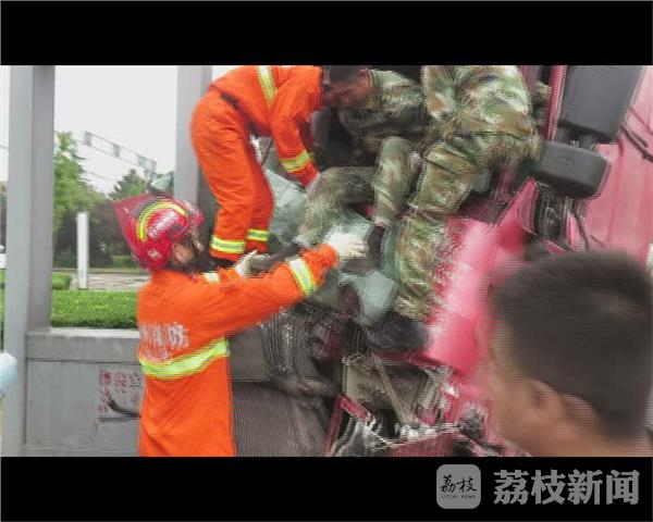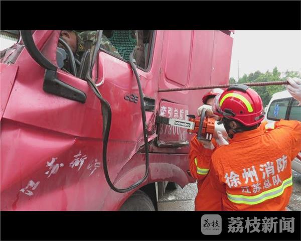 10月21日上午11时,在徐州新沂市开发区马陵山西路和天津路交叉口 ,一辆满载木材的大货车与一辆载有18吨汽油的油罐车相撞。大货车司机在撞到油罐车后,又撞到路边的电线杆才停下,大货车司机被困车内。接到报警后新沂消防中队立即赴现场救援。