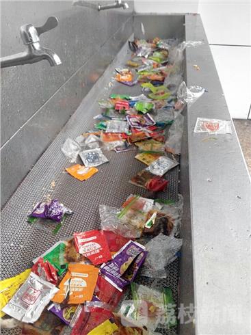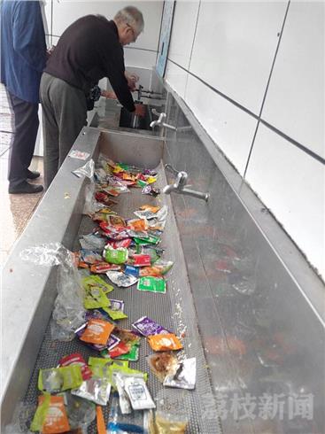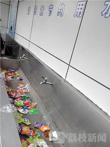 当日下午,13:00左右,笔者驾车在沪蓉高速公路前往苏州,14:45左右,在(丹阳)窦庄服务区休息时,乘客们对的开水,却发现供水处水池里,铺着一层五颜六色食品调料袋,包装袋等垃圾,到处油乎乎,严重影响沪蓉高速公路的形象。