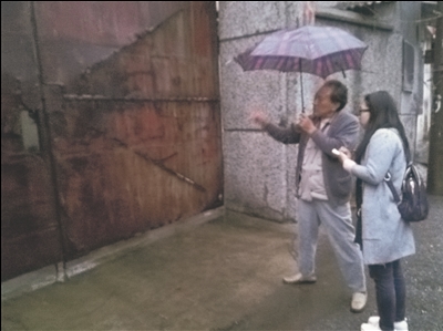 21日下午大雨阵阵,唐闸地区文史专家凌步桂老人带着本报记者在唐闸实地察看了相关历史遗迹。老人撑着雨伞一一指点有关现场,并详细介绍了那血与火交织的峥嵘岁月。