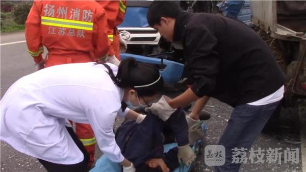 10月24日上午9点30分左右,扬州仪征市马集镇蔡湖村境内333省道,一辆拖拉机与一辆卡车迎头相撞,双方司机受伤被困。接到报警后,当地交警、消防、120急救等部门迅速赶往现场处置。