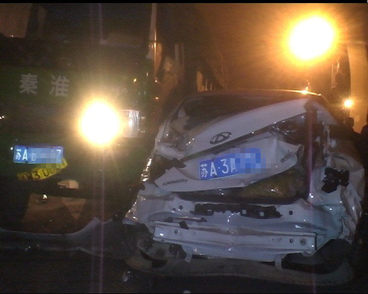 10月25日晚上9点多,南京市秦淮区应天大街高架桥秦虹南路下坡处,一辆工程车突然刹车失灵,连撞数车后才停下,造成一名轿车驾驶员受伤,事发后被送往医院救治,据了解,伤者暂时没有生命危险。