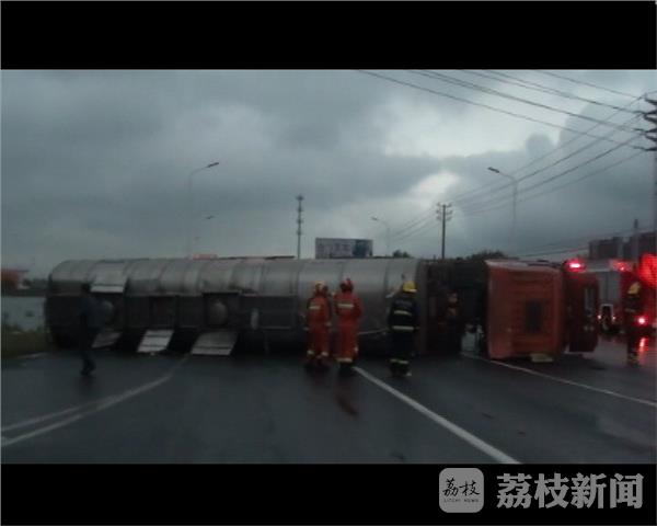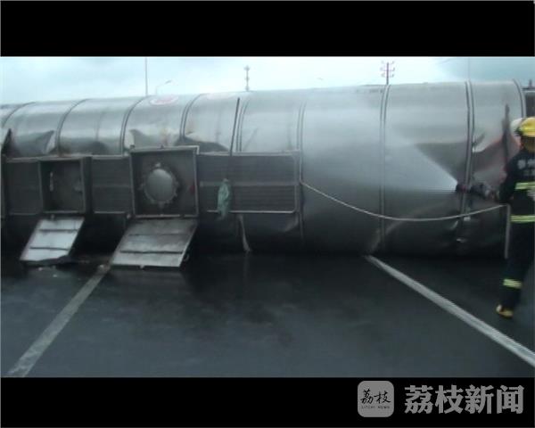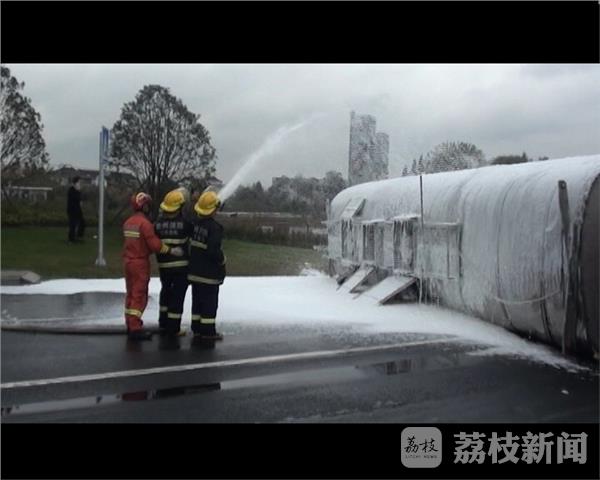 10月25日凌晨5点多,泰州市高港区高港大道上,一辆装载有20吨醋酸正丁酯的槽罐车发生了侧翻,罐体局部破损,罐内危险品发生了泄漏。