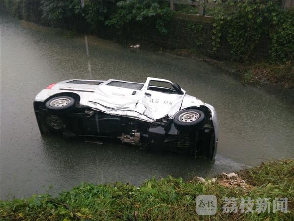 今天(10月26日)上午9:20左右,在扬州广陵区龙泉路与创业路交叉路口,一辆面包车和一辆轿车相撞,面包车避让不及侧翻坠入河中,车内两人被困,所幸河内河水不深,河里两人很快被救上岸,目前具体事故原因还有待调查中。