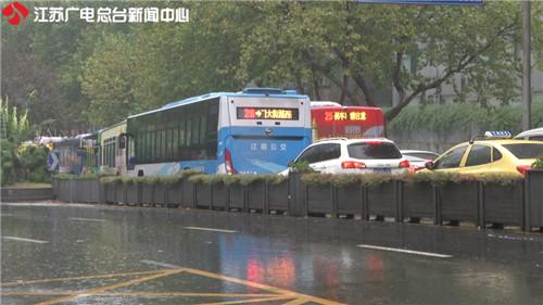 在南京的玄武大道,随着雨越下越大,路面上还出现了小范围的积水。由于这一处路段正在施工,不远处就是红灯路口,记者在现场看到了车多缓行的情况。如果雨量持续加大,积水加深的话,可能会对通过的车辆造成影响。