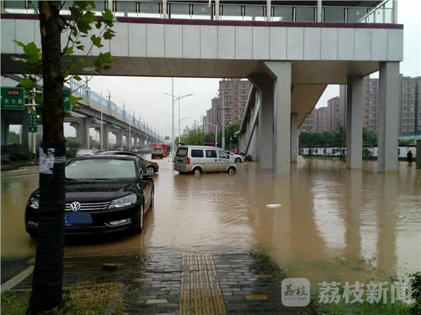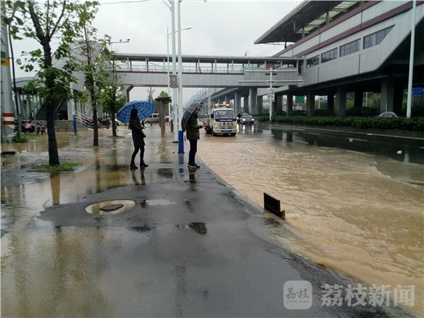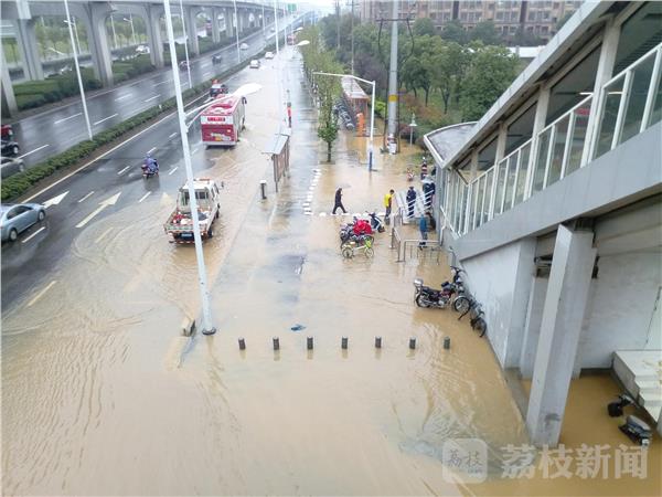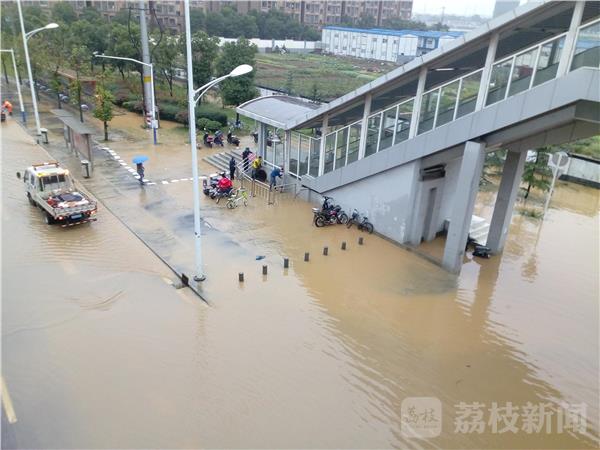 今天(10月27日)的大雨让南京不少道路、小区被淹,尤为严重的南京高新开发区地铁站六合往南京一侧已经被水包围,乘客上车只有踩在工作人员码好的蛇皮袋包上通过,有市民调侃“现在开始上码头了”。由于雨量太大,再加上高新开发区地铁站地势比较低,四面八方的客水全部流向这里,造成排水不畅,很快地铁站就成了一片汪洋。随后市政、地铁等有关部门迅速采取措施,一边掀起路边下水道盖板排水,一边在进出口堆起蛇皮袋供乘客进出。据一位乘客反映,这个车站每次下大雨都会被淹,给乘客带来很多不便,希望有关部门能从根本上解决问题,给乘客出行提供方便。