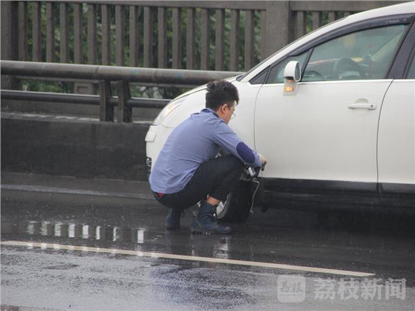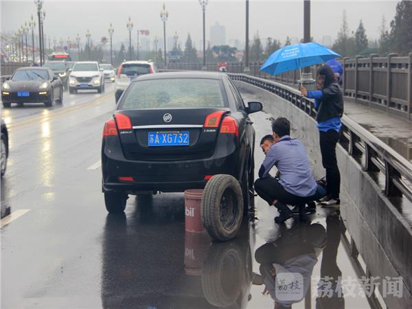 另一车主介绍,他停在桥下检查轮胎时,看到五六辆车都停下来检查,好几位司机都在换胎。司机们很烦恼,“看来长江大桥还真要好好维修啦!”