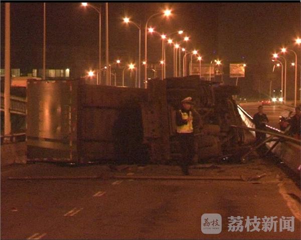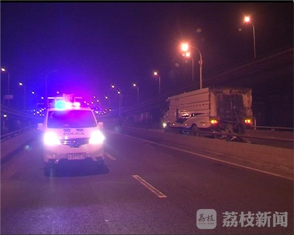 11月2日凌晨4点半,南京秦淮区龙蟠中路双桥门高架桥由北向南方向, 一辆环卫车与一辆正在作业的清扫车发生追尾,环卫车侧翻倒在对面车道上,司机被困车内急需救援。