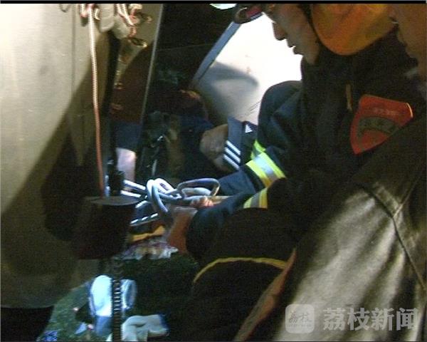 在现场,环卫车司机被困在驾驶室内动弹不得,表情十分痛苦。赶到的消防队员用绳索分别系在消防车和环卫车上,以此将驾驶室拉开一些缝隙,帮助司机脱困。