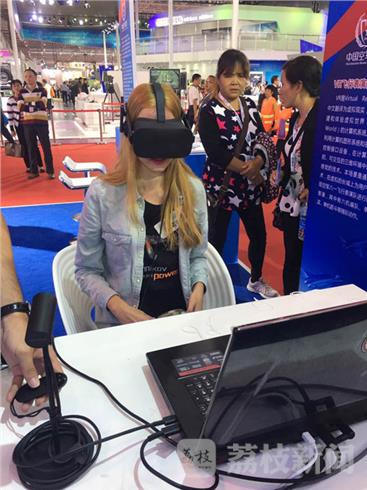 在招飞展台,环环先是体验了把用VR从不同视角(机舱内和机舱外)感受了飞行表演系统,一直称不怕高的环环戴上VR眼镜后直呼不敢往前走,身边就是蓝天白云,好美好美。