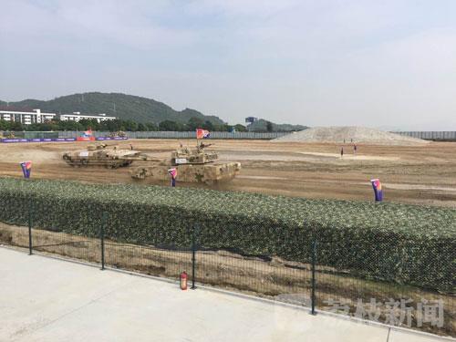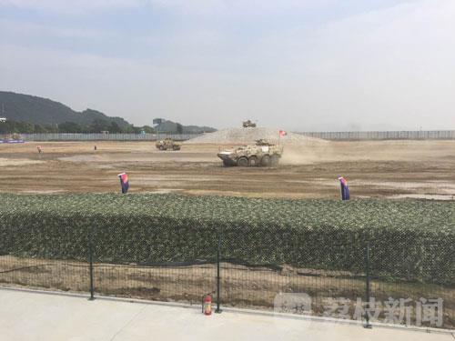 一直安安静静的7万平方米动态演示区突然尘土飞扬,VT4坦克率先亮相跟大伙儿打招呼,紧接着VT2改进型主战坦克出场。别看这些坦克外形很笨重,爬起坡来可是一点不含糊,很高的坡咻的一下就过去了,完全可以用身姿矫健来形容。VT4坦克、VT2改进型主战坦克、轮式战车等,让我们记住这些名字,在整整40分钟的表演过程中,这些坦克展示了爬坡、越水沟、过障碍、炮塔调整等,看的小编是一阵一阵的起鸡皮疙瘩。