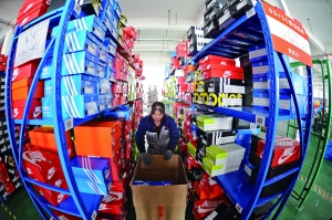 11月2日,在连云港市某电商产业园,工人整理商品迎接“双十一”