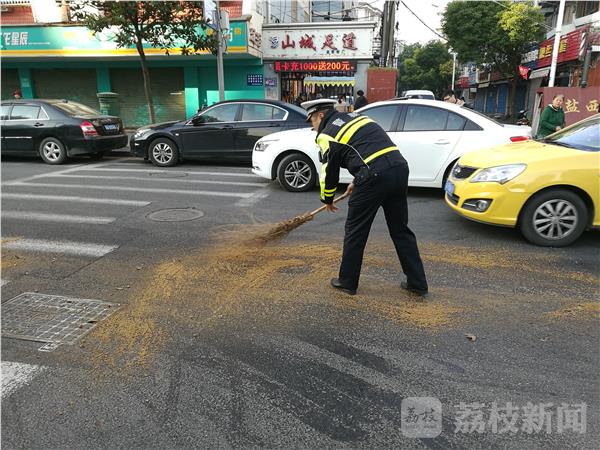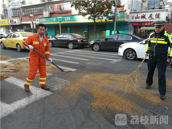11月4日早晨6点15分左右,南京鼓楼区盐仓桥大街,有市民报警,称自己骑车经过时,不慎被路面上的大量油污滑倒,同行滑倒的还有好几位市民,不知这些油污是谁泼下的,报警求助,接警后民警随即前往现场处理。