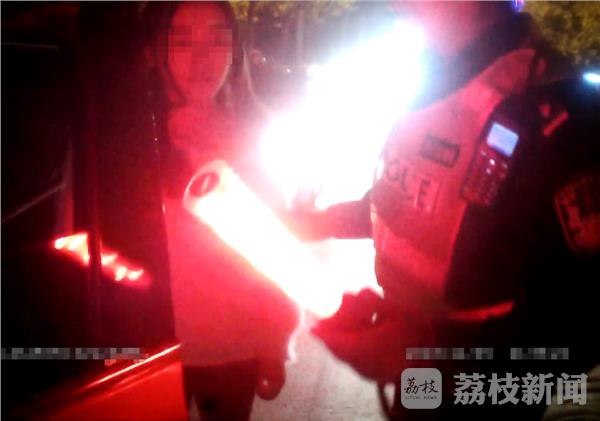 当晚9点多钟,交警在矿山路设卡对过往车辆进行逐一检查,晚上9点33分,一名年轻女司机被酒精快速检测棒测出了酒驾。交警立即要求其下车,并将其控制住。