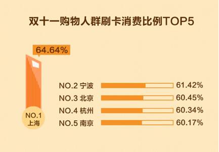 2016年的“双十一”,哪些城市的人将最“精明”?排第一名的非上海莫属。在付款方式上,上海地区的受访中,有64.64%的人优先选择用信用卡或者京东、白条等信用支付的方式支付,随后是宁波和北京。信用卡/信用支付比例分别为61.42%和60.45%。