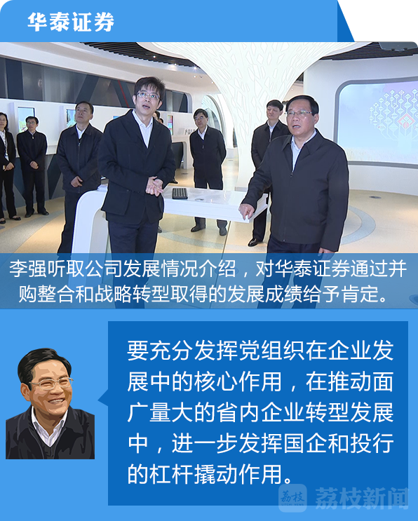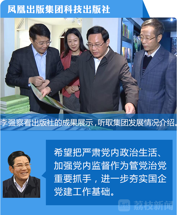 李强先后来到华泰证券、江苏大剧院和凤凰出版集团,了解企业发展和党的建设工作情况。