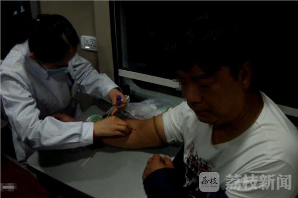 由于男子涉嫌醉驾,民警让随车医生现场对男子进行抽血,等待血检结果出来,男子将面临6个月以下拘役的刑事处罚。据了解,当晚民警共查处酒后驾驶4起,醉酒驾驶1起。