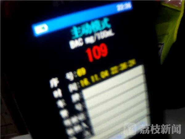 男子浑身酒气,民警立即将其带上警车进行检测,结果显示男子的酒驾含量竟高达109毫克,已经达到了醉酒驾驶的标准。