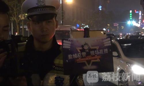 11月6日晚上,盐城警方交警一大队组织四十多名警力,分成两个行动小组,在盐城市区建军路与文港路交汇的十字路口,开展查处酒后驾驶机动车辆的专项整治行动。行动中,盐城交警微发布平台进行了现场全程直播。