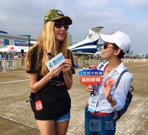 在今年的航展中,荔枝网联合江苏城市频道进行了每天长达3小时的现场直播,创下了每天荔枝在线观看直播人数50万人。在这次的直播中,我们还有一位特殊的嘉宾,来自俄罗斯的环环与江苏城市频道首席记者田柳进行了搭档主持。