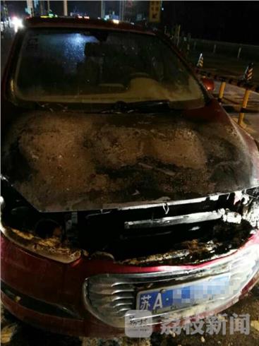昨天晚上18点50,一辆轿车刚刚出了沪宁高速汤山收费站的ETC通道20米,轿车引擎盖位置就开始冒烟。