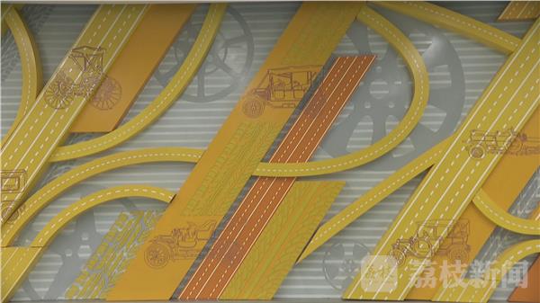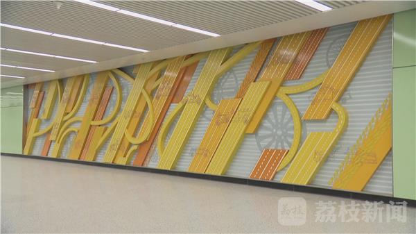 设计师大胆创新,采用铝板雕刻、切割、琉璃镶嵌等手法,突出太湖石特点。走进细看你会发现,太湖石表面还利用铝材的金属延展性,做了不少镂空和斑点。在4号线“吴江汽车站”站内,文化墙围绕“立体乐章”主题,以交错的高速、高架几何造型为主元素,汽车轮毂和轮胎纹印为底纹装饰,呈现出经济发展和交通运输之间的一种平衡。苏州湾东站文化墙则以“鲈乡诗意”为主题。120多条琉璃烧制的“四腮鲈鱼”畅游前行,构成一幅“鲈乡”独特的画卷。文化墙选取40多位书法家创作的吴江题材诗词歌赋作品,再现自然秀美和人文诗意。