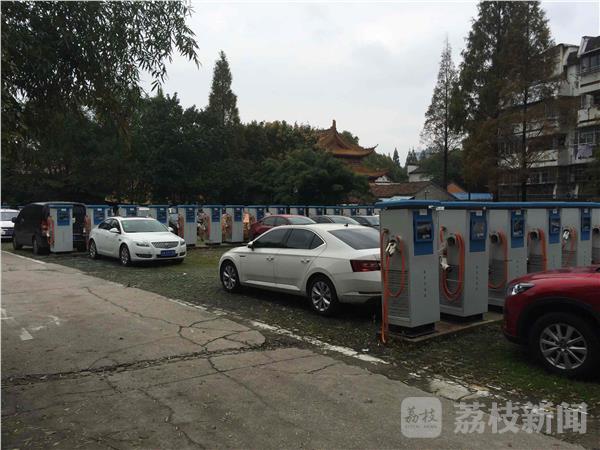 当日中午,笔者看到了这个充电桩群,位于南京武定门明城墙北侧与白鹭洲公园之间的一块空地上,这些充电桩高约1.6米,外观为灰色,正面上部设有刷卡区,一共设有50个充电桩,充电桩都有“鼎充”的字样,上面写着“直流充电”。环顾四周,充电区过道上停满普通燃油轿车,充电位变成了停车位,整个充电区俨然成为了一个停车场,这些车辆将充电区围着。据附近居民介绍,这个充电桩群自安装完毕,一直没有使用,慢慢地成了周围小区居民的停车场。采访时了解到,一位车主说,现在大力倡导新能源汽车,可这建好的充电桩竟成了摆设,这让他难以理解。
