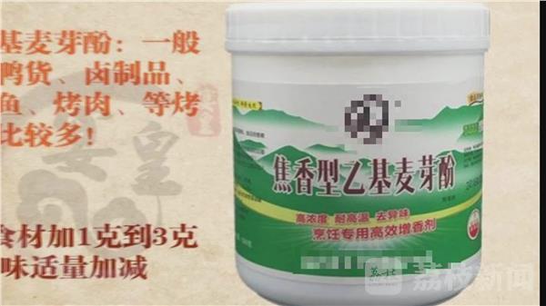随后,记者又来到隔壁一家同样出售食品添加剂的店铺。食品添加剂摊位店主说,拿麦芽酚能去腥,增香, 能盖掉鱼不新鲜味道。这名店主又推荐了另一种食品添加剂乙基麦芽酚,她告诉记者,这种麦芽酚比香膏好用得多,因为它能掩盖变质发臭的鱼肉。