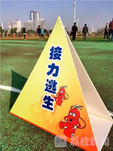 本次消防安全趣味运动会以“平安校园 欢乐家园”为主题,设置了接力灭火、灭火弹抛准、盲穿越安全门、接力逃生(跳长绳)、连接逃生带(绳头打结)、连接消防水带等6个比赛项目,充分地将灭火、疏散、逃生等各环节的消防安全知识和技能融入项目之中。学校6个年级组、3个办学点和后勤组共10支代表队参加比赛,学生们在老师的带领下井然有序地开展逃生演练活动。