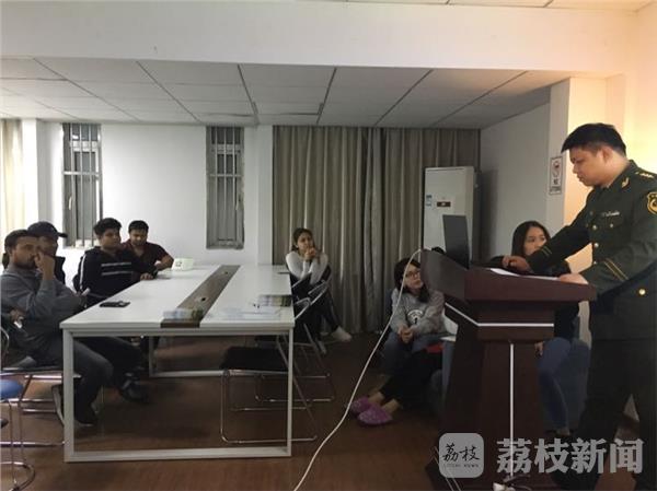 南京浦口消防大队参谋李岩东围绕扑救火灾、组织引导人员疏散逃生和消防基础知识,对上百名留学生进行了培训。