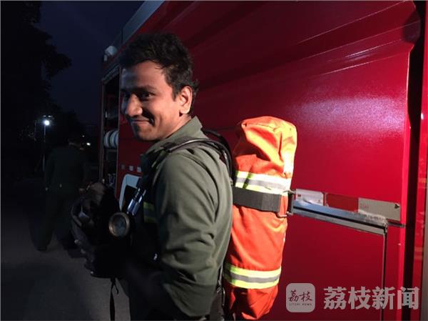 来自孟加拉国的桑尼在消防官兵的协助下,穿上了这套作战装备,还戴上呼吸器头盔,头盔可以在火场为消防员提供25到30分钟的氧气。这是桑尼第一次体验当消防员,得知消防战士每天都要穿着如此沉重的装备训练或是上火场救援,他连连感叹真不容易。