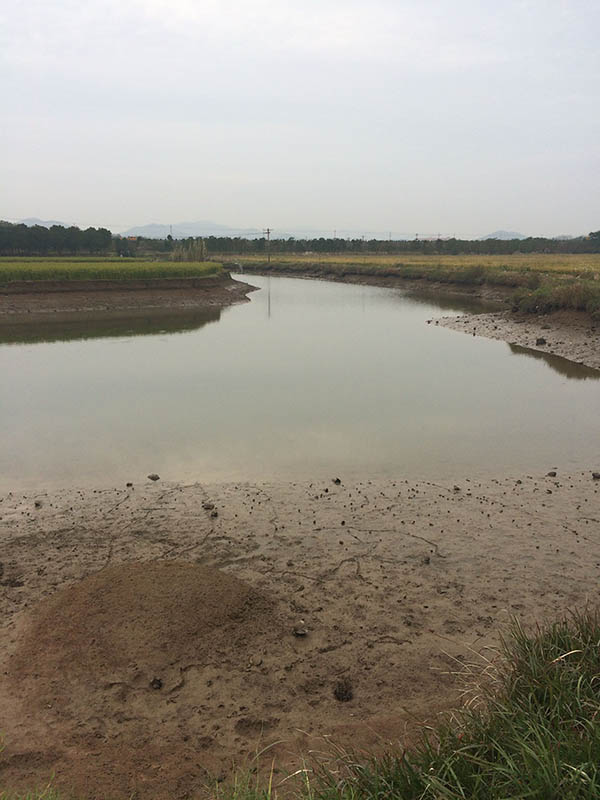 祖孙溺亡的水塘被金黄的稻田包围。水塘南北狭长,约有100米左右。 澎湃新闻见习记者 邱海鸿 图