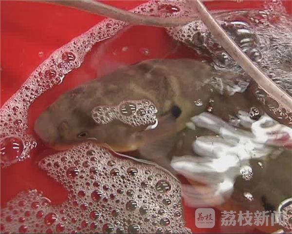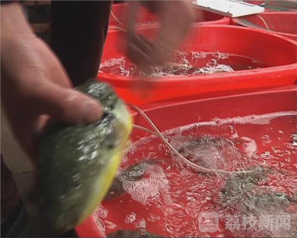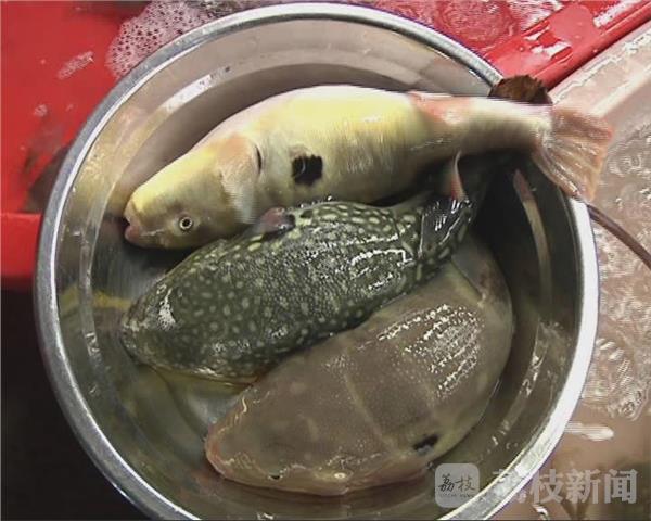 《通知》中规定,先行有条件地放开养殖红鳍东方鲀和养殖暗纹东方鲀两个品种产品的加工经营。要求养殖河鲀加工企业,按照河鲀加工技术要求去除有毒部位和河鲀毒素,河鲀可食部位(皮和肉可带骨)经检验合格后附检验合格证方可出厂。禁止加工经营所有品种的野生河鲀。 11月10日上午,在镇江朱方路的水产批发市场,荔枝新闻记者看到不少店铺都有河豚贩卖,品种正是《通知》中解禁的两种河豚。