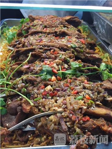 东南大学的玉米鱼、南理工的二月兰米糕,南农的菊花鸡排、南京晓庄学院的冰梅鸭……几大高校都拿出了“看家菜色”。更有学校现场“开锅”,把同学们看得“口水直流”。