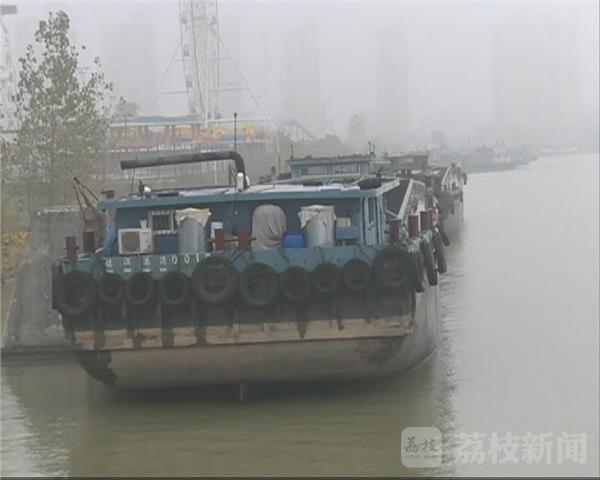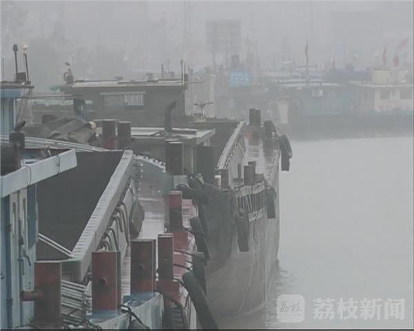 11月18日早晨,受辐射降温影响,泗阳城被一层大雾笼罩,受此影响泗阳大桥以及周边的高层建筑都淹没在大雾中,记者在京杭运河泗阳段看见,水面能将度不足百米,近百艘载重货船原地滞留,当地海事部门也实施临时交通管制,待雾散去方可通行。